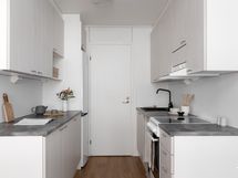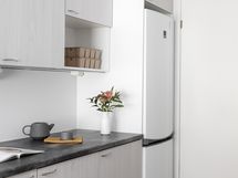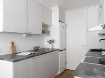 - Liesi: keraaminen. Työtasot: laminaatti. Kylmäsäilytys: jääkaappi/pakastin. Varustus: astianpesukone, liesituuletin / hormi.