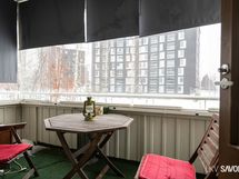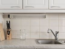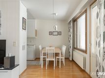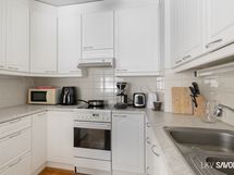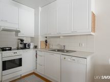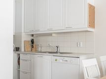 - Keittiön varusteet: Liesi, liesituuletin, astianpesukone, jääkaappipakastin ja uuni. Liesi: Keraaminen liesi. Työtason materiaali: Laminaatti.