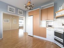 - Keittiön varusteet: Mikroaaltouuni, astianpesukone (2023), jääkaappi, uuni, liesi ja liukuovet. Liesi: Keraaminen liesi. Työtason materiaali: Laminaatti.