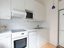 - Keittiön varusteet: Jääkaappipakastin, uuni, liesi, mikroaaltouuni ja astianpesukone. Liesi: Keraaminen liesi. Työtason materiaali: Puu. 2006 uusittu.