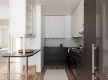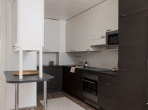 - Liesi: induktio, erillisuuni. Työtasot: laminaatti. Kylmäsäilytys: jääkaappi/pakastin. Varustus: mikroaaltouuni, astianpesukone, kiinteät valaisimet, liesituuletin / suodatin.