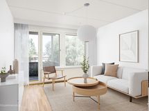 - Olohuoneesta/makuuhuoneesta parkkipaikka, keittiöstä metsään/puistoaluetta