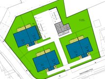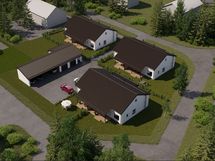 Asunto Oy Jyväskylän Voittola koostuu kolmesta paritalosta ja talousrakennuksesta.