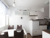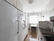 - Paljon kaappitilaa, Paljon työskentelytilaa, Laminaattitasot, Astianpesukone, Liesi tai uuni erikseen, Induktioliesi, Jääkaappi, Pakastin