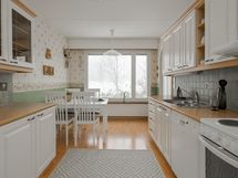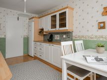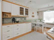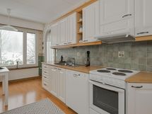 - Jääkaappi, sähköliesi, liesituuletin, astianpesukone, kaapistot, kiinteät valaisimet. Kylmäkomero