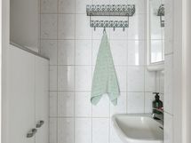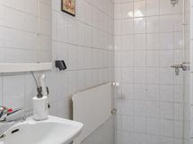 - Sauna, puukiuas, kylpyhuone, erillinen wc, suihku, peilit wc:ssa, pesukoneliitäntä wc:ssa, lattialämmitys, kiinteät valaisimet. Erillisessä pienessä kph:ssa lattia ja seinät laattaa, peili ja kaapistot. Kaapistojen alla on myös viemäri