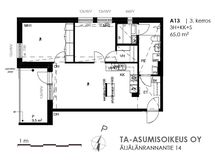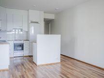 Toimivapohjainen asunto talon kolmannessa kerroksessa. Makuuhuoneet ovat hyvän kokoiset ja asunnossa on oma sauna. Länteen avautuva parveke tarjoaa ilta-auringon suuntaan näkymät. Lattiat ovat laminaattia ja kylpyhuone on kauttaaltaan laatoitettu. Keittiössä on tilavaraus astianpesukoneelle, kylpyhuoneessa pesutornille. Toisesta makuuhuoneesta löytyy vaatehuone.