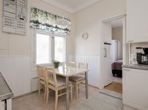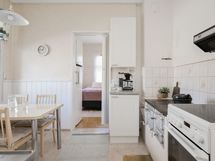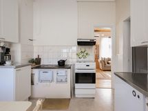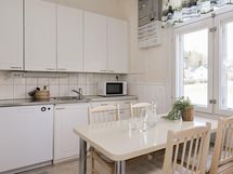 - Keittiössä varusteina: jääkaappi, sähköliesi, liesituuletin, astianpesukone ja kiinteät valaisimet.
