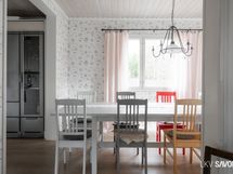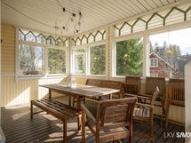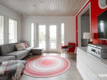 - Olohuoneesta on käynti isolle terassille, osittain lasitettu/ikkunat