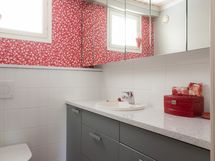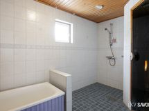 - Pesutilojen varusteet: Suihku (2 kpl), kylpyamme (irto) ja lattialämmitys (sähköinen). Erillisten WC:n lukumäärä: 2. Erillisen WC:n varusteet: WC-istuin, peilikaappi, pesuallas, allaskaappi, bidee-suihku ja lattialämmitys. Erillisen WC:n kuvaus: Yläkerran wc: