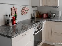 - Keittiön varusteet: Jääkaappipakastin (Festivo (2013)), viinikaappi (Festivo), uuni (AEG), liesi, liesituuletin (Lapetek) ja astianpesukone (Asko (integroitu)). Liesi: Induktioliesi. Työtason materiaali: Graniitti. Keittiö on remontoitu vuonna 2013 (Puustelli)