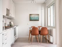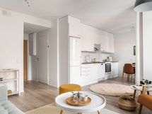 4/6-kerroksen tilava kaksio, jonka lasitettu parveke ja ikkunat on Paperitehtaankadun suuntaan. Huoneiston vaalea värimaailma luo valoisan tunnelman koko asuntoon. Keittotilasta löytyy kaikki tarpeellinen kuten keraaminen liesi, astianpesukone ja jääkaappi/pakastin yhdistelmä.