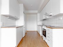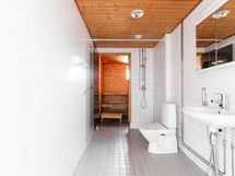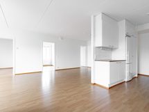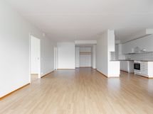 Tilava ensimmäisen kerroksen neliö. Avarasta olohuoneesta käynti asunnon kolmeen makuuhuoneeseen. Yhdessä makuuhuoneista myös vaatehuone tuomassa lisää säilytystilaa. Keittiö on avoin ja käytännöllinen, ja sen yhteydessä on ruokailutila. Asunnossa on oma sauna, jossa pääsee nauttimaan löylyistä. Itään suuntautuva parveke tuo mukavasti lisätilaa.