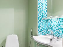 - Pesutilojen varusteet: Suihku ja pesukoneliitäntä. Erillisten WC:n lukumäärä: 1. Erillisen WC:n varusteet: WC-istuin, peilikaappi, pesuallas, allaskaappi ja bidee-suihku.