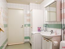 Lattia: Keittiössä: parketti. Pesutiloissa: muovi. Saunassa: muovi. Seinät: Keittiössä: maalattu. Pesutiloissa: kaakeli. Saunassa: puu.