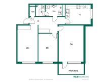 - Kylpyhuone, suihku, sähkösauna, pesukoneliitäntä, kylpyhuonekaapisto, kiinteät valaisimet