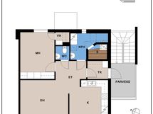 2/2-kerroksen tilava saunallinen kaksio. Kylpyhuoneessa liitäntä ja tila pyykinpesukoneelle. Erillinen wc. Makuuhuoneessa runsaasti säilytystilaa: vaatekaappien lisäksi vaatehuone. Sisääntulon yhteydessä parveke.