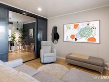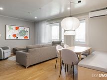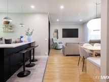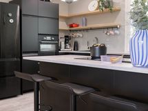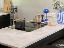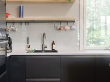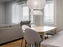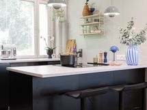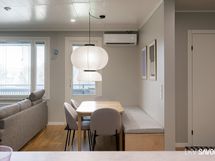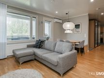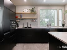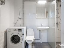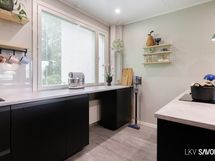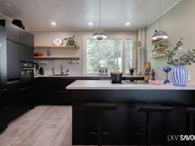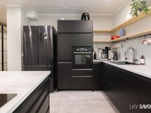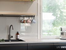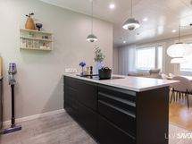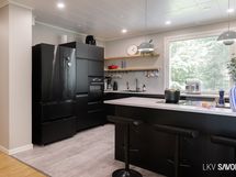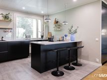 - Keittiön varusteet: Jääkaappipakastin, uuni, liesi, liesituuletin, astianpesukone ja keittiösaareke. Liesi: Induktioliesi.