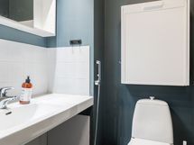 - Pesutilojen varusteet: WC-istuin, suihku, suihkuseinä, pesukoneliitäntä, peilikaappi ja pesuallas. Erillisten WC:n lukumäärä: 1. Erillisen WC:n varusteet: WC-istuin, bidee-suihku, pesuallas ja peilikaappi.