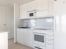 - Jääkaappi, pakastekaappi, induktioliesitaso, kalusteuuni, astianpesukone (integroitu), mikroaaltouuni (integroitu). Vetolaatikot ja ovet on varustettu hidastimilla