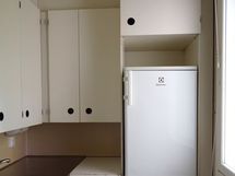 - Liesi: sähköliesi. Työtasot: laminaatti. Kylmäsäilytys: jääkaappi.