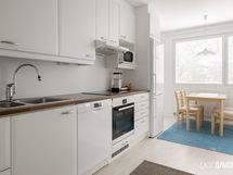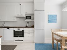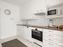 - Keittiön varusteet: Jääkaappipakastin, erillisuuni, liesi, astianpesukone ja liesituuletin. Liesi: Induktioliesi. Työtason materiaali: Laminaatti. Uusittu 2014.