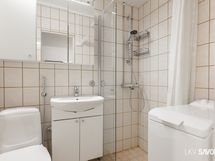 - Pesutilojen varusteet: WC-istuin, suihku, pesuallas, allaskaappi, suihkuseinä, peilikaappi ja bidee-suihku. Pesutilojen kuvaus: Putkiremontin yhteydessä 2016 uusittu