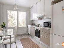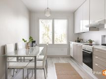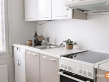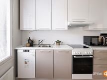 - Jääkaappipakastin, keraaminen liesi, liesituuletin, astianpesukone, kaapistot, kiinteät valaisimet.
