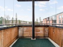 Lasitettu parveke talon päädyssä. Juuri perusparannuksesta valmistunut valoisa koti, keittiö ja kylpyhuone saunoineen uusittu täysin.