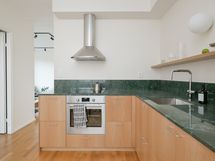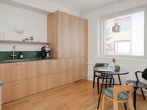 - Keittiön varusteet: Jääkaappipakastin (integroitu / kalustepeitteinen), erillisuuni, liesi, liesituuletin ja astianpesukone (integroitu / kalustepeitteinen). Liesi: Induktioliesi. Työtason materiaali: Kivi. Keittiökalusteet kodinkoneineen on uusittu vuonna 2025.