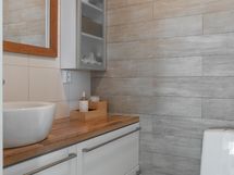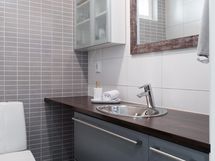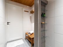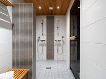 - Kylpyhuone: kaksi suihkua. Sauna: sähkökiuas. Erillinen wc x 2 (allaslaatikosto, kaapisto, peili, wc, bidee). Kodinhoitohuone: kaapistot, pesukoneliitäntä, pesutorni, lavuaari, kurapiste.
