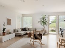 Kaunis ja hyvin pidetty paritalokoti huippupaikalla Jyskän halutulla asuinalueella odottelee uusia asukkaita. Asunnossa on kolme makuuhuonetta ja valoisa olohuone isoilla ikkunoilla. Modernissa keittiössä on hyvin tilaa kokkailla ja nauttia muun perheen seurasta. Sisustuksessa on käytetty harmonisia ja kodikkaita värisävyjä. Kodinhoitohuoneesta pääset suoraan takapihan puolelle suojaisalle nurmialueelle. Päädyssä katettu terassi antaa mahdollisuuden nauttia kesän auringosta. Energiatehokas ilma/vesilämpöpumppu ja vesikiertoinen lattialämmitys lämmittävät koko asunnon. Palvelut, koulut ja lenkkimaastot aivan kivenheiton päässä. Tervetuloa tutustumaan!