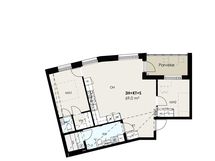 Suihku, suihkukaappi, pesukoneliitäntä.