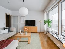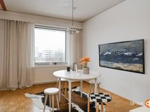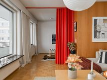- Olohuoneesta, molemmista makuuhuoneista ja parvekkeelta näkymät kaakon suuntaan sisäpihalle päin. Keittiöstä näkymät lounaan suuntaan Cygnaeuksenkadulle päin.