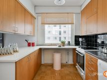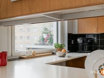 - Jääkaappipakastin, keraaminen liesi, liesikupu, astianpesukone, kaapistot, kiinteät valaisimet.