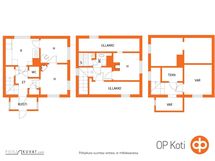 - Sauna, sähkökiuas, kylpyhuone, erillinen wc wc alakerrassa ja toinen wc yläkerran kh:n yhteydessä, suihku, suihkuseinä, peilikaappi, pesukoneliitäntä yläkerran kylpyhuoneessa, lattialämmitys yläkerran kosteissa tiloissa, kiinteät valaisimet. Yläkerran pesuhuone ja sauna tehty v. 2016 (toimenpiteelle ei ole haettu