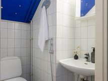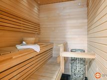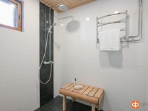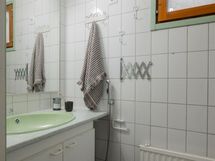 - Sauna, sähkökiuas, kylpyhuone, erillinen wc, suihku, peilit molemmissa wc, allaskaappi, pesukoneliitäntä (khh), lattialämmitys khh,kh,s, kiinteät valaisimet, rättipatteri.