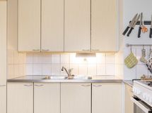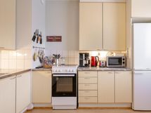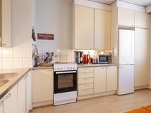 - Jääkaappipakastin, sähköliesi, kaapistot, kiinteät valaisimet. Astianpesukoneenliitäntä