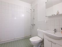 - Kylpyhuone, suihku, peilikaappi, allaskaappi, pesukoneliitäntä, kiinteät valaisimet.