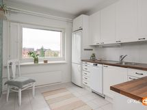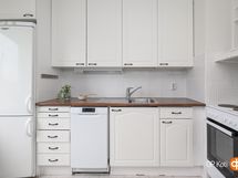 - Jääkaappipakastin, sähköliesi, liesituuletin, astianpesukone, kaapistot, kiinteät valaisimet.