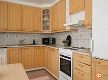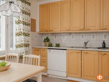 - Jääkaappi, lattialiesi, sähköliesi, liesituuletin, astianpesukone, kaapistot, kiinteät valaisimet. Keittiölaitteiden toiminasta ei tietoa. Hella ja astianpesukone eivät toimi.