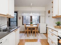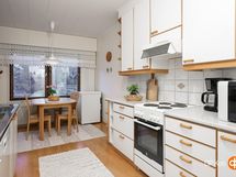- Jääkaappipakastin, sähköliesi, liesituuletin, astianpesukone, kaapistot, kiinteät valaisimet.