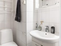 - Kylpyhuone, suihku, suihkuseinä, peilikaappi, allaskaappi, pesukoneliitäntä, kiinteät valaisimet. Kylpyhuone remontoitu 2009 LVI -saneerauksen yhteydessä.