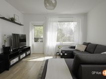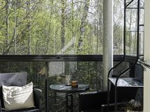 - Läpitalon huoneisto: keittiön ikkuna länteen, makuhuoneen ja olohuoneen ikkunat itään. Parvekkeelta vehreät puistonäkymät.
