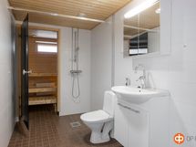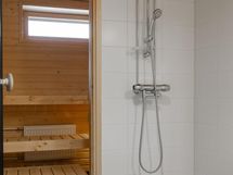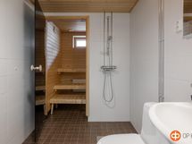 - Sauna, sähkökiuas, kylpyhuone, suihku, peilikaappi, allaskaappi, pesukoneliitäntä, lattialämmitys, kiinteät valaisimet. Sauna lähes uuden veroinen - hyvin vähän käytetty.