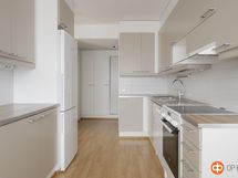 - Jääkaappipakastin, keraaminen liesi, liesituuletin, astianpesukone, kaapistot, kiinteät valaisimet.