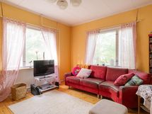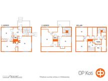 Alkuperäisen rakennusluvan mukaisesti alakerran asunnon, 2 h + k huoneistoala on 57 m² ja yläkerran asunnon, 1 h + k pinta-ala on 37 m²