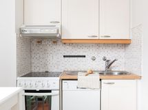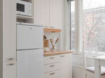 - Liesi: keraaminen. Työtasot: laminaatti. Kylmäsäilytys: jenkkikaappi. Varustus: astianpesukone, kiinteät valaisimet, liesituuletin / suodatin.