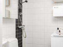 - Varustus: pesukoneliitäntä, lattialämmitys, wc-istuin, peilikaappi, kiinteät valaisimet, kylpyhuonekaapisto.
