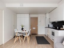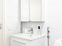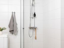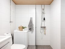 - Varustus: suihkuseinä, pesukoneliitäntä, lattialämmitys, wc-istuin, suihku, kiinteät valaisimet.